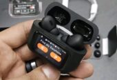 এই অত্যাধুনিক স্মার্ট ইয়ারবাডস শুধু চমৎকার সাউন্ড কোয়ালিটিই নয়, বরং একেবারে নতুন প্রযুক্তির ছোঁয়া নিয়ে এসেছে। ইয়ারবাডস কেসের সামনে একটি টাচ স্ক্রিন ডিসপ্লে রয়েছে, যার মাধ্যমে আপনি ব্যাটারি পার্সেন্টেজ, গান প্লে/পজ, ভয়েস কন্ট্রোল, ও নয়েজ রিডাকশন ফিচার নিয়ন্ত্রণ করতে পারবেন।