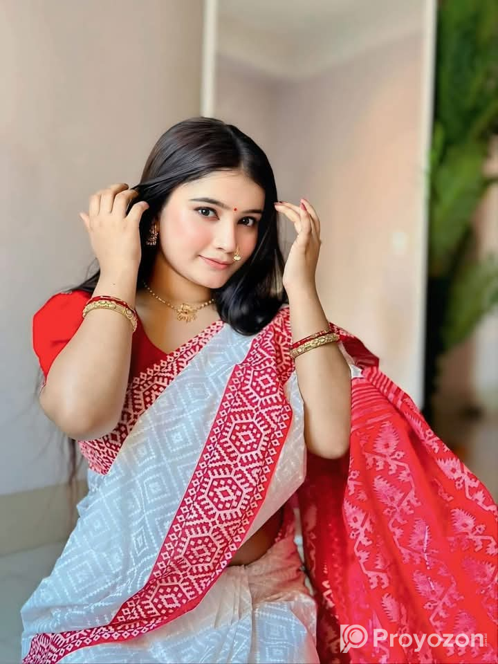 হাফসিল্ক গ্লিটার প্রিন্ট শাড়ি সেল করা হবে