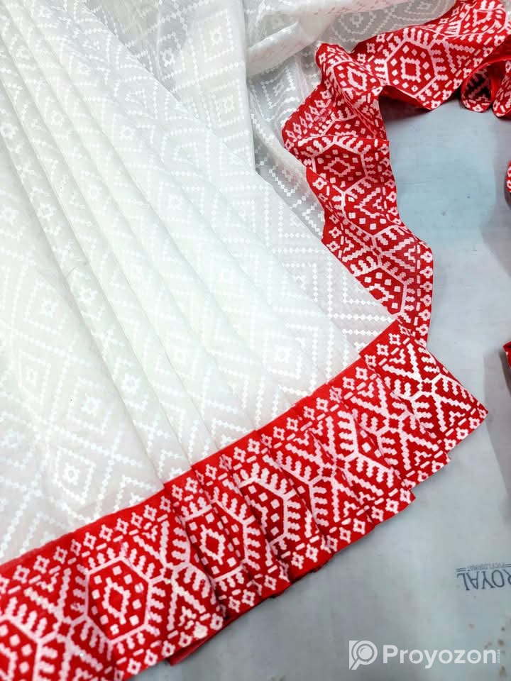 হাফসিল্ক গ্লিটার প্রিন্ট শাড়ি💥